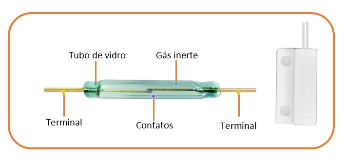 Um interruptor reed switch típico contém um par de palhetas de metal feitas de material ferromagnético (algo que é facilmente magnetizado, mas perde o magnetismo quando sai de um campo magnético). As superfícies dos contatos do reed switch são revestidas com metais resistentes, como ródio, rutênio, paládio ou irídio, proporcionando ao sensor uma vida útil mais longa.